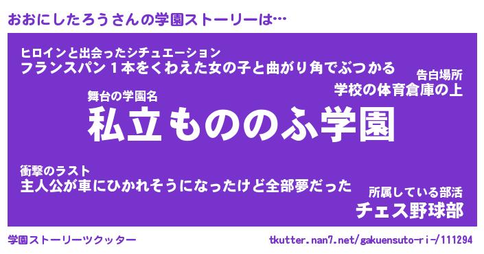 | 男性向けラノベタイトル風あだ名 | 『おおにしたろうの憂鬱』 |