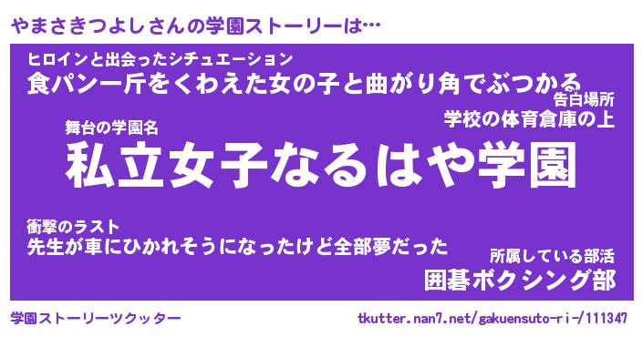 | 女子向けラノベタイトル風あだ名 | 『誰かこのやまさきつよしを説明してください! ~契約から始まるウェディング~』 |