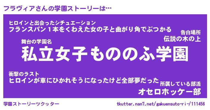 | 女子向けラノベタイトル風あだ名 | 『フラヴィア姫と円卓の騎士』 |