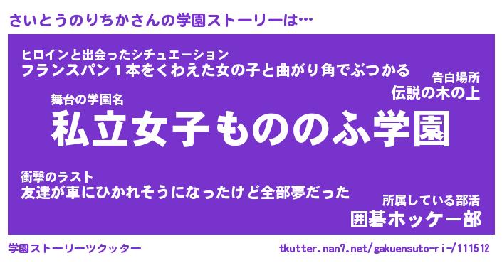 | 女子向けラノベタイトル風あだ名 | 『さいとうのりちか姫と円卓の騎士』 |