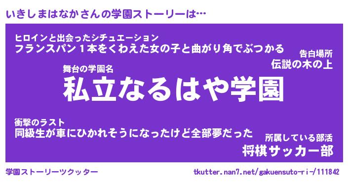 | 男性向けラノベタイトル風あだ名 | 『いきしまはなかの憂鬱』 |