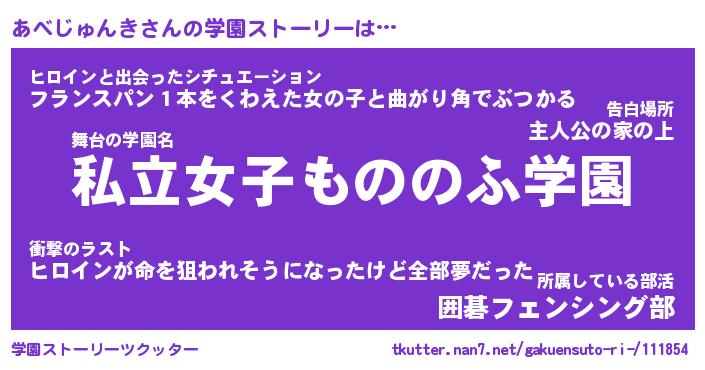 | 男性向けラノベタイトル風あだ名 | 『アベジュンキアートオンライン』 |
