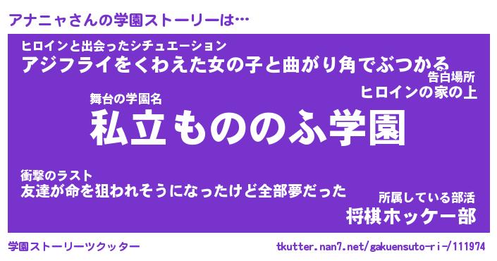 | 男性向けラノベタイトル風あだ名 | 『アナニャの憂鬱』 |