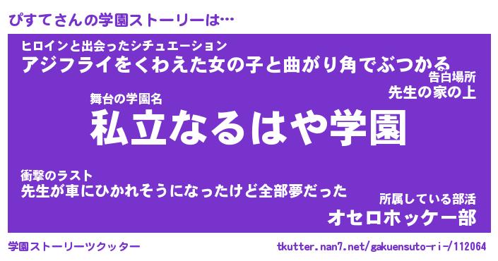 | 男性向けラノベタイトル風あだ名 | 『ぴすての憂鬱』 |