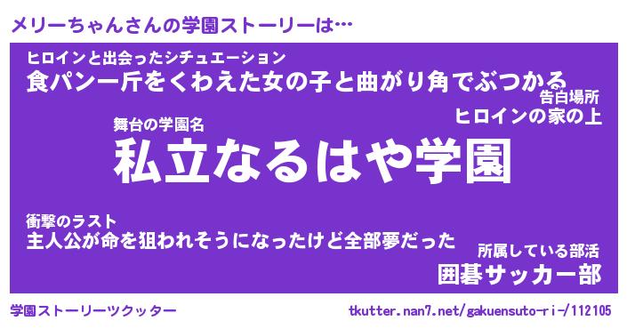 | 男性向けラノベタイトル風あだ名 | 『メリーちゃんの憂鬱』 |