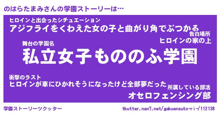 | 女子向けラノベタイトル風あだ名 | 『誰かこののはらたまみを説明してください! ~契約から始まるウェディング~』 |