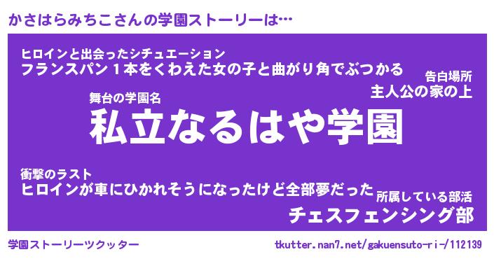 | 女子向けラノベタイトル風あだ名 | 『(仮)かさはらみちこのやんごとなき事情』 |