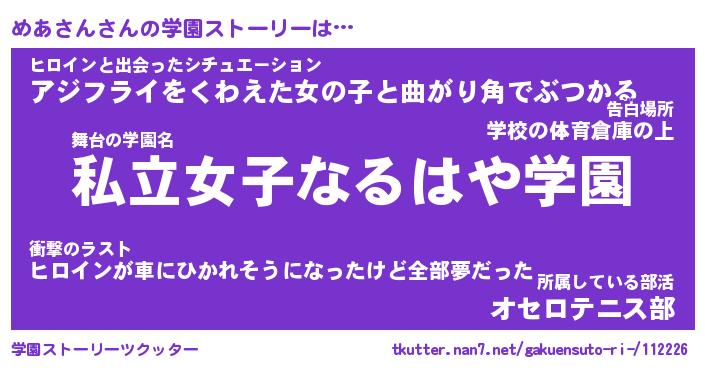 | 意味不明あだ名 | 『ペロリンめあさん』『永久保存めあさん』 |