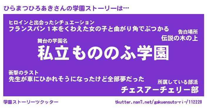 | 女子向けラノベタイトル風あだ名 | 『(仮)ひらまつひろあきのやんごとなき事情』 |