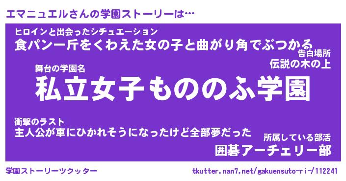 | ヘコむあだ名 | 『エマにー』『牛乳』『エマぷりん』 |
