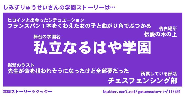 | 女子向けラノベタイトル風あだ名 | 『しみずりゅうせい姫と円卓の騎士』 |