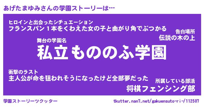 | 男性向けラノベタイトル風あだ名 | 『あげたまゆみの憂鬱』 |