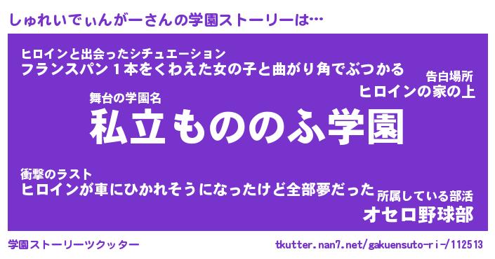 | 男性向けラノベタイトル風あだ名 | 『しゅれいでぃんがーの憂鬱』 |