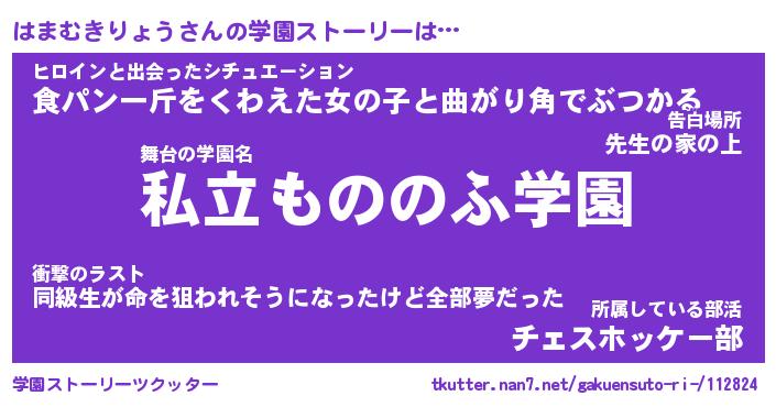 | 男性向けラノベタイトル風あだ名 | 『はまむきりょうの憂鬱』 |