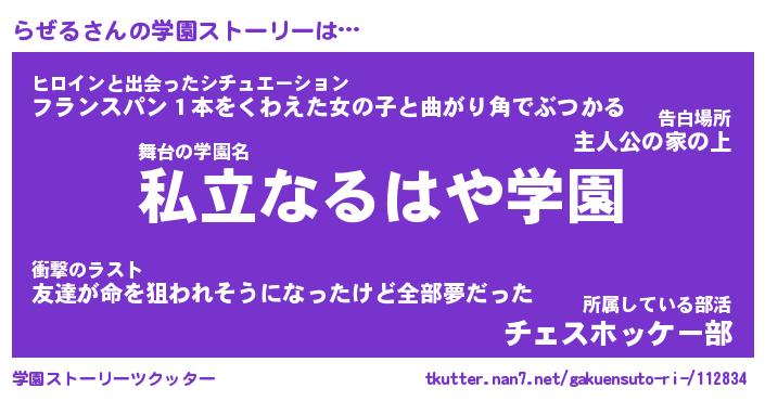 | 女子向けラノベタイトル風あだ名 | 『らぜる姫と円卓の騎士』 |