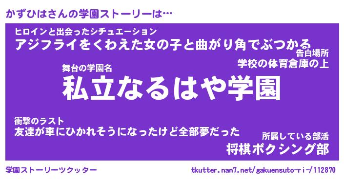 | 男性向けラノベタイトル風あだ名 | 『かずひはの憂鬱』 |