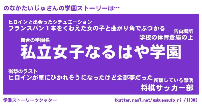 | 男性向けラノベタイトル風あだ名 | 『ノナカタイジュアートオンライン』 |