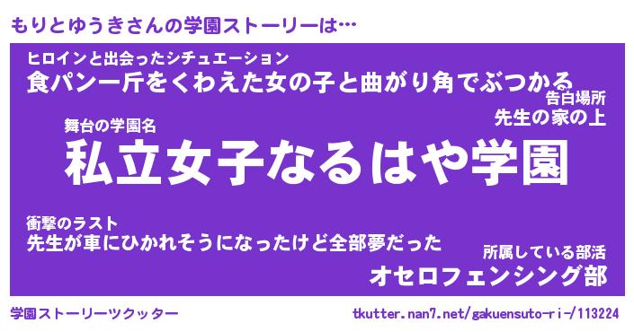 | ヒーロー風カッコイイあだ名 | 『スーパーモリトユウキ』『天弓騎士モリ』 |