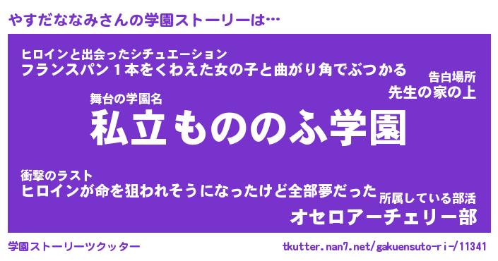 | 男性向けラノベタイトル風あだ名 | 『やすだななみの憂鬱』 |