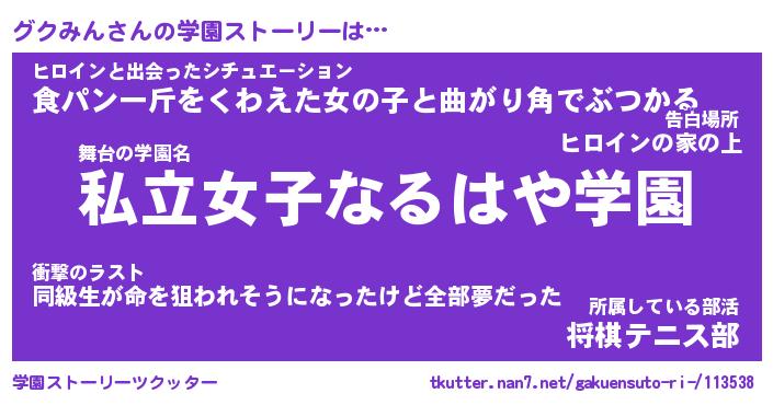 | 伝説のあだ名 | 『封印されしスナイパーグクみん』 |