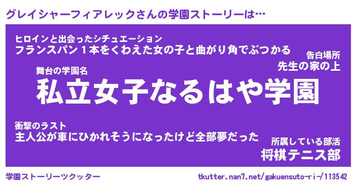 | 女子向けラノベタイトル風あだ名 | 『グレイシャーフィアレック姫と円卓の騎士』 |
