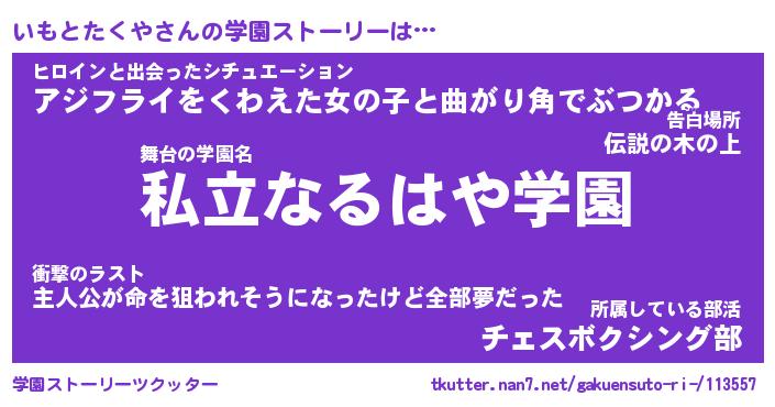 | ヒーロー風カッコイイあだ名 | 『スーパーイモトタクヤ』『幻影騎士イモ』 |