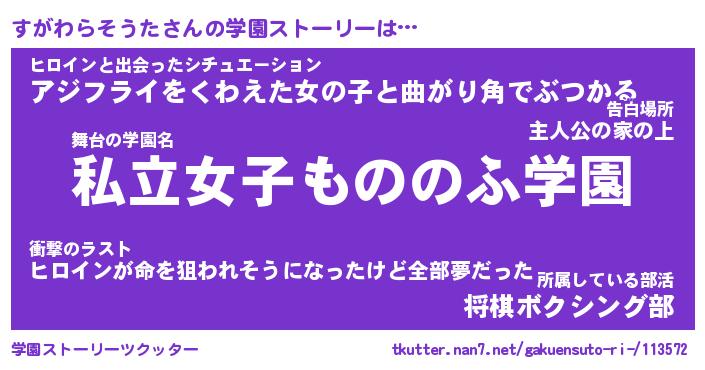 | 女子向けラノベタイトル風あだ名 | 『誰かこのすがわらそうたを説明してください! ~契約から始まるウェディング~』 |