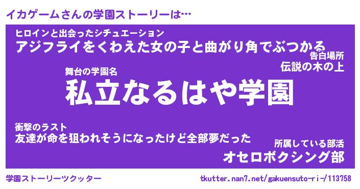 | 女子向けラノベタイトル風あだ名 | 『(仮)イカゲームのやんごとなき事情』 |