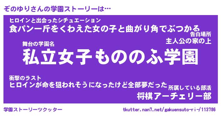 | 女子向けラノベタイトル風あだ名 | 『ぞのゆり姫と円卓の騎士』 |