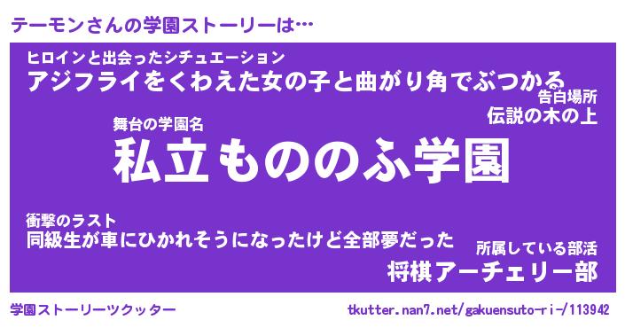 | 男性向けラノベタイトル風あだ名 | 『テーモンの憂鬱』 |