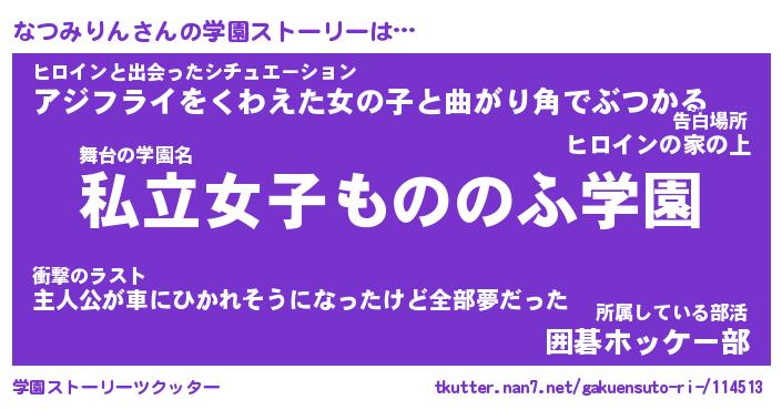 | 女子向けラノベタイトル風あだ名 | 『なつみりん姫と円卓の騎士』 |