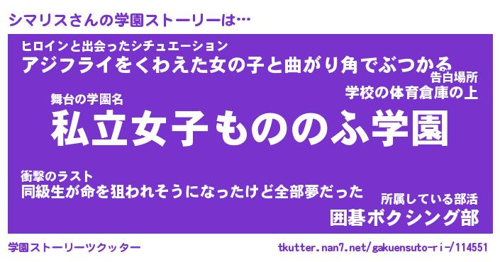 | ファンタジー風あだ名 | 『シマフェル』『エターナルシマリスー』 |