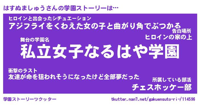 | 女子向けラノベタイトル風あだ名 | 『誰かこのはすぬましゅうを説明してください! ~契約から始まるウェディング~』 |