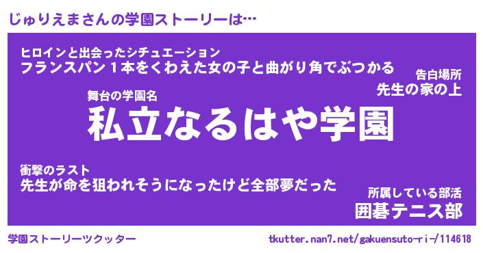 | 伝説のあだ名 | 『伝説のスナイパーじゅりえま』 |