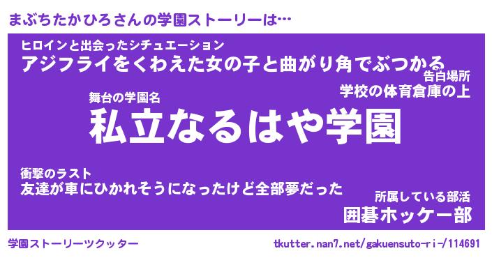 | 男性向けラノベタイトル風あだ名 | 『まぶちたかひろの憂鬱』 |