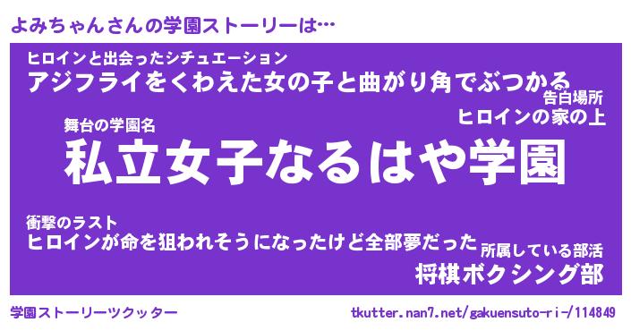 | 女子向けラノベタイトル風あだ名 | 『よみちゃん姫と円卓の騎士』 |