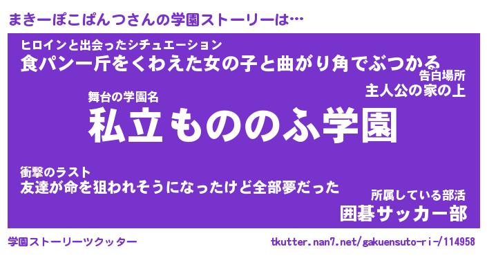 | 男性向けラノベタイトル風あだ名 | 『まきーぽこぱんつの憂鬱』 |