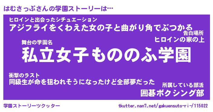 | ファンタジー風あだ名 | 『ハムフェル』『エターナルハムサップー』 |