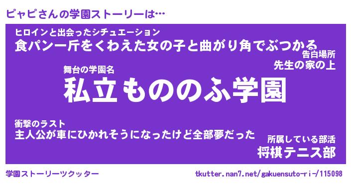 | 男性向けラノベタイトル風あだ名 | 『ピャピの憂鬱』 |