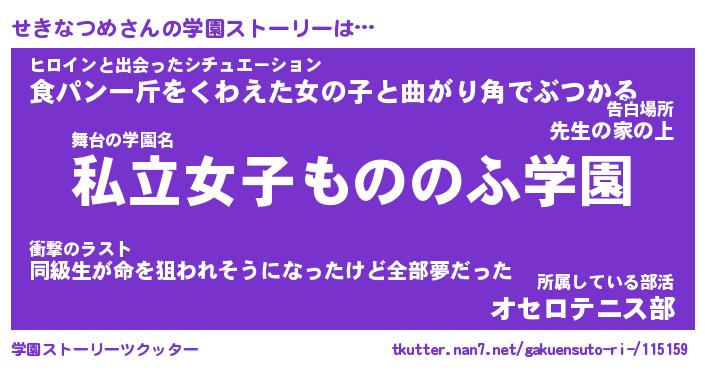 | ヘコむあだ名 | 『せきふぇ~』『牛乳』『せきっ子』 |