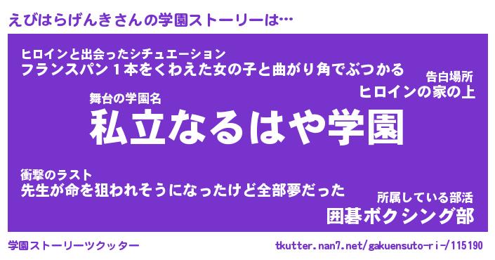 | 男性向けラノベタイトル風あだ名 | 『えびはらげんきの憂鬱』 |