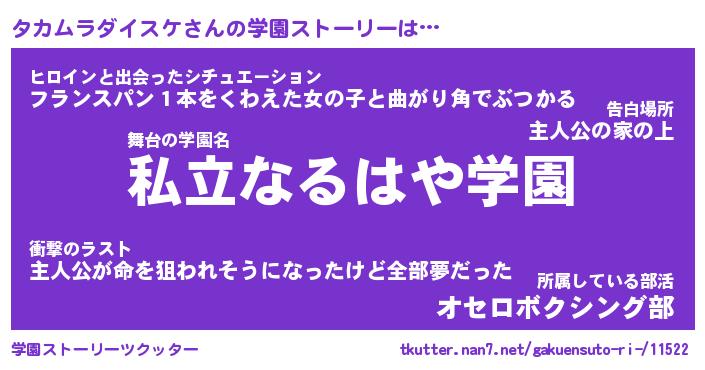 | 女子向けラノベタイトル風あだ名 | 『(仮)タカムラダイスケのやんごとなき事情』 |