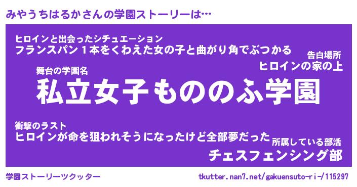 | 女子向けラノベタイトル風あだ名 | 『みやうちはるか姫と円卓の騎士』 |