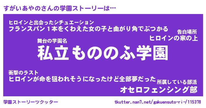 | 女子向けラノベタイトル風あだ名 | 『(仮)すがいあやののやんごとなき事情』 |