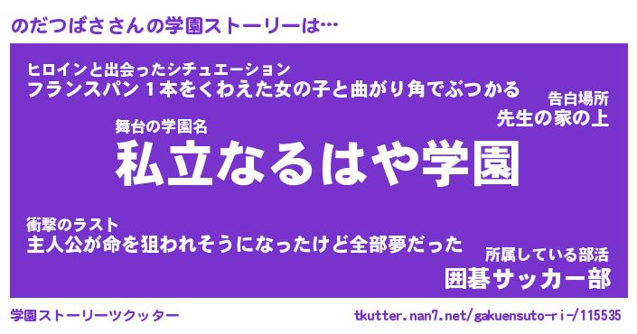 | 女子向けラノベタイトル風あだ名 | 『のだつばさ姫と円卓の騎士』 |
