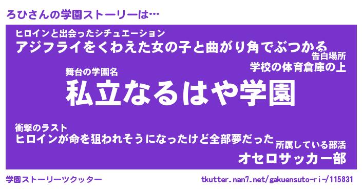 | 告白場所 先生の家の上 …「ふぃぎゅこ」 | 2月17日 06:24 |