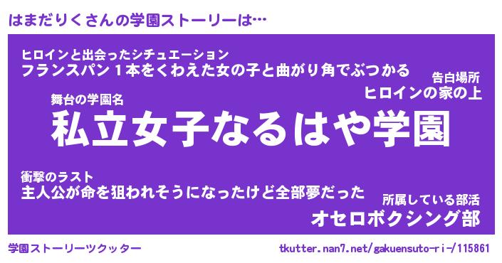 | 女子向けラノベタイトル風あだ名 | 『誰かこのはまだりくを説明してください! ~契約から始まるウェディング~』 |