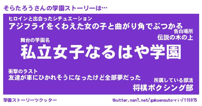 | ファンタジー風あだ名 | 『ソラフェル』『エターナルソラタロウー』 |