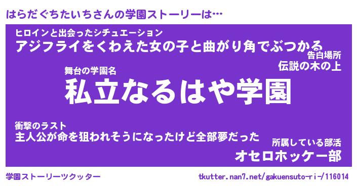 | 男性向けラノベタイトル風あだ名 | 『はらだぐちたいちの憂鬱』 |