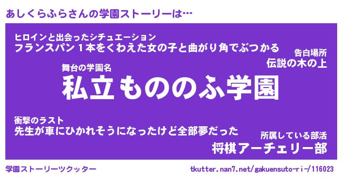 | 男性向けラノベタイトル風あだ名 | 『あしくらふらの憂鬱』 |